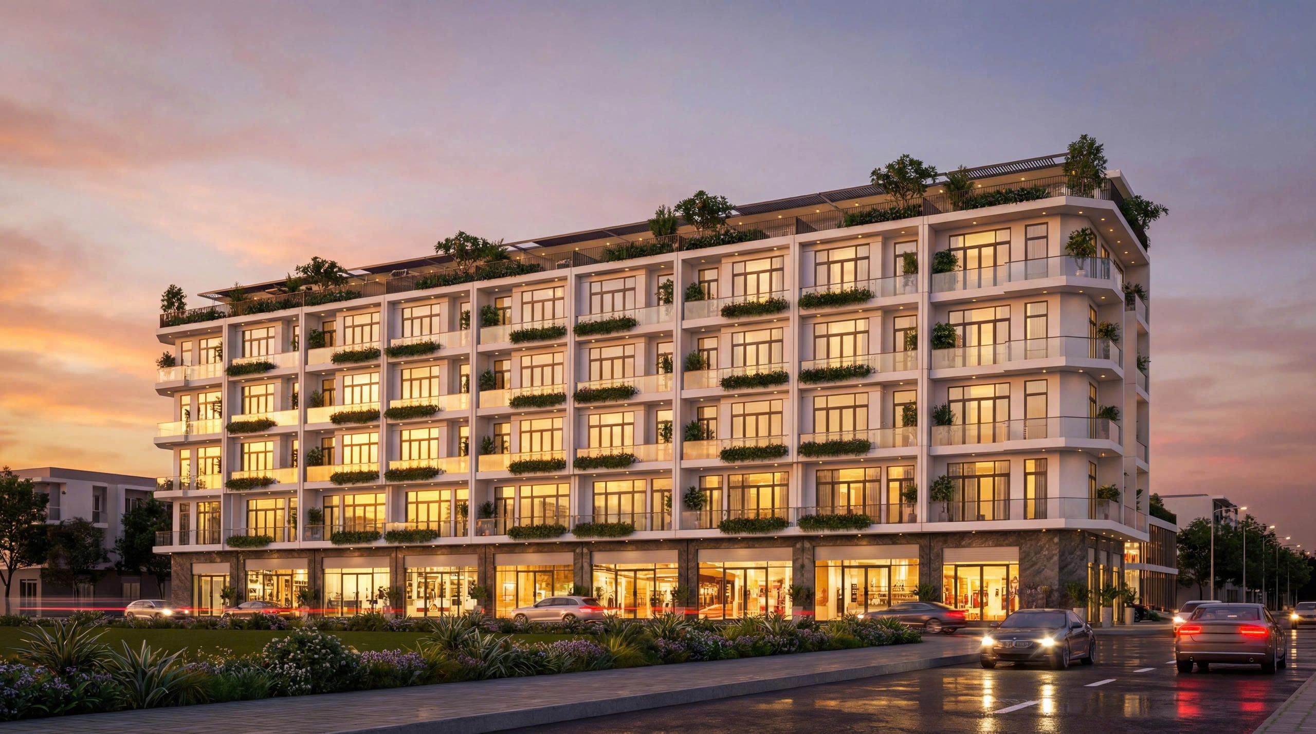 Mảng xanh thẳng đứng: Chúng tôi tích hợp tối đa cây xanh tại các ban công mỗi căn hộ, tạo hiệu ứng “vườn thẳng đứng” độc đáo, kết nối cư dân với thiên nhiên tối đa.